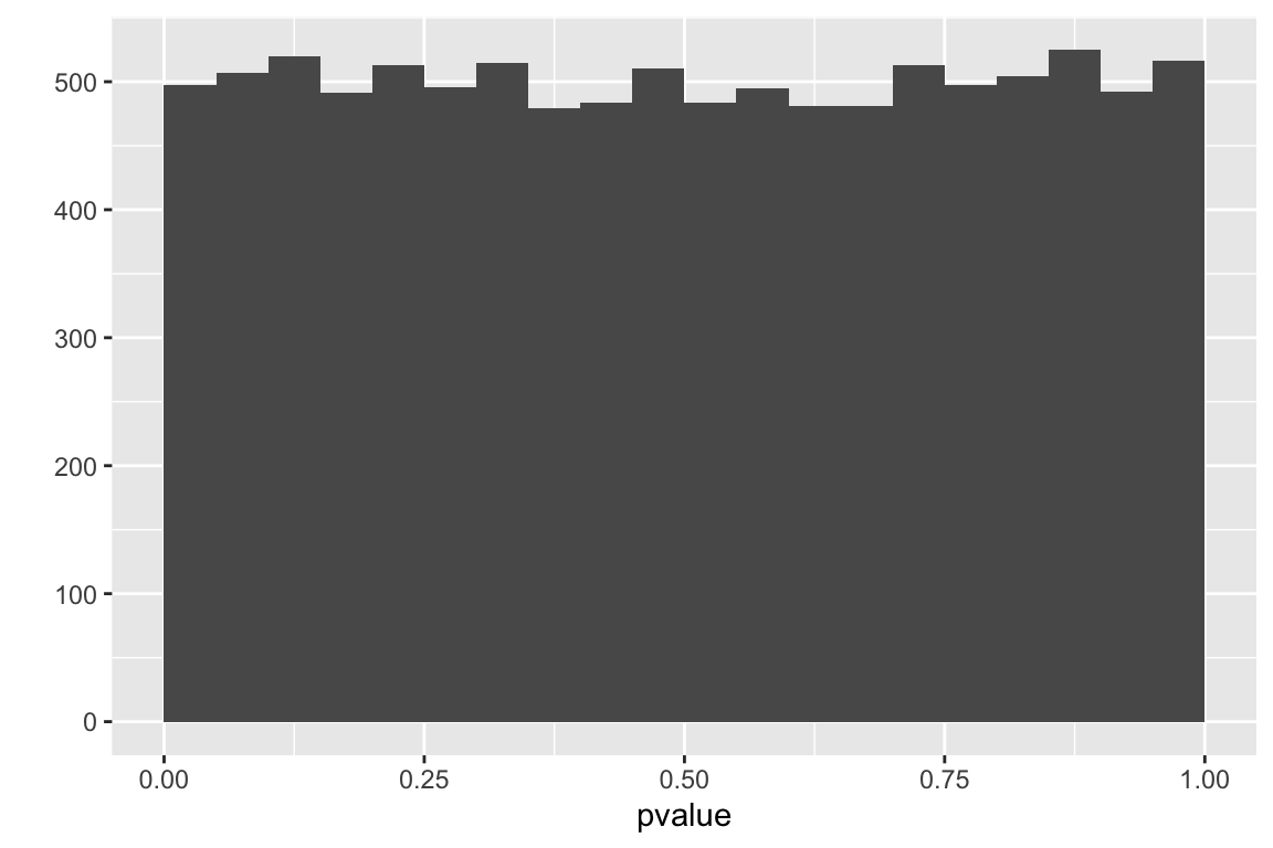 I often ask students, “if the null were true, what is the most likely p-value?” or “if the null were true, what kind of p-values would we expect, that is what is the expected distribution.” A common answer is p=0.5 is the most likely value and something like a normal curve, except the tails abruptly stop at 0 and 1, is the expected distribution.